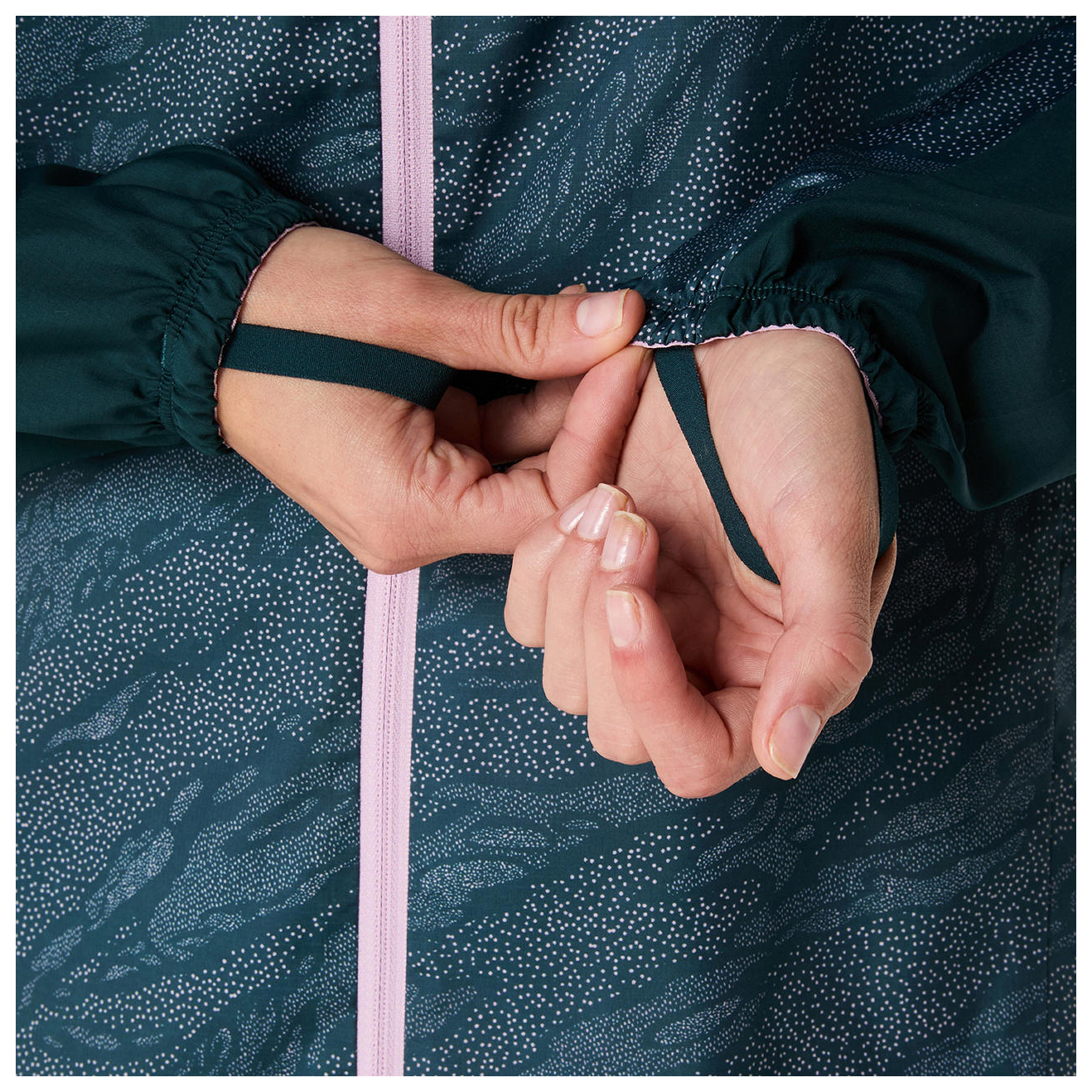 - all-over print, elastic sleeve cuffs, stowable in its own pocket, drawstring in the seam, logo print, reflective details