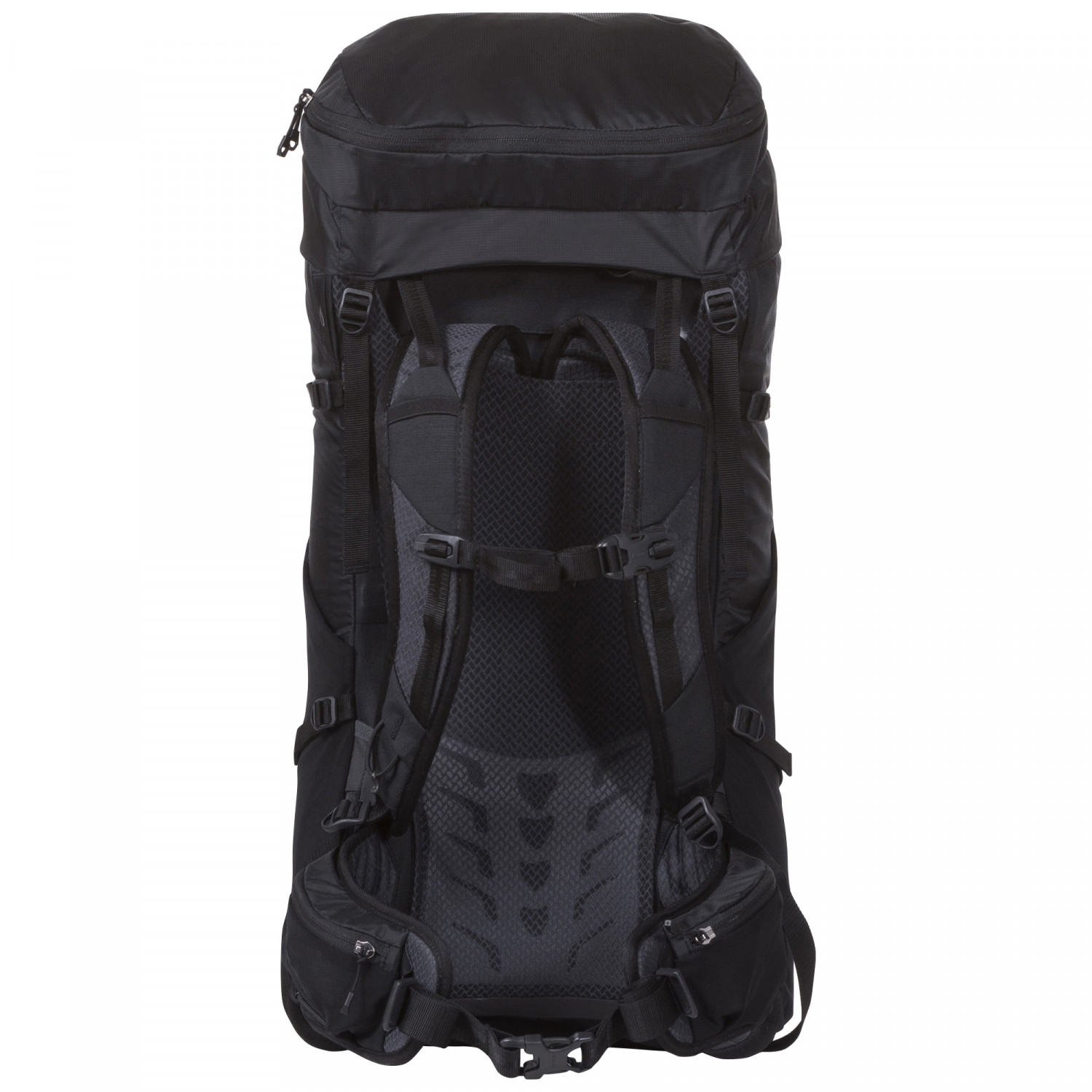 - 2 hip belt pockets, 2 side mesh compartments, ice axe/pole holder, front compartment, key clip
