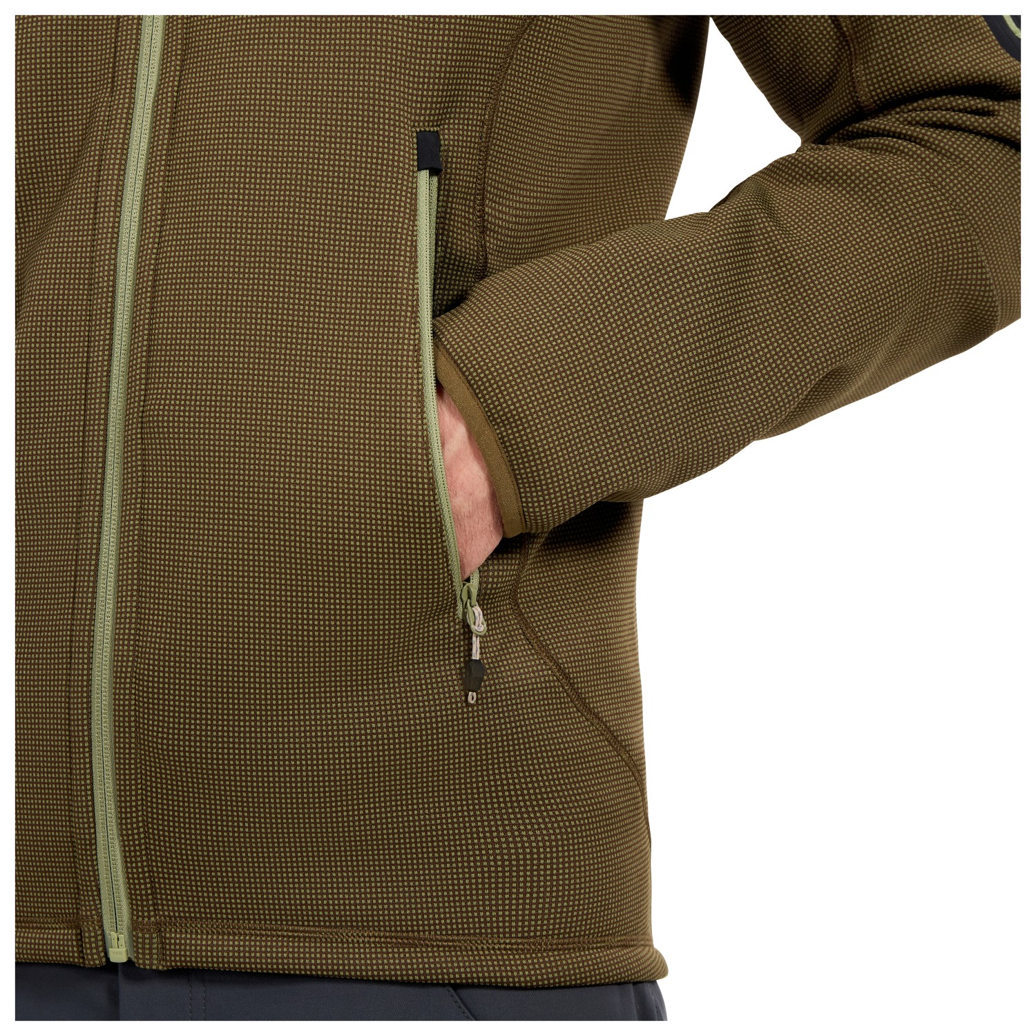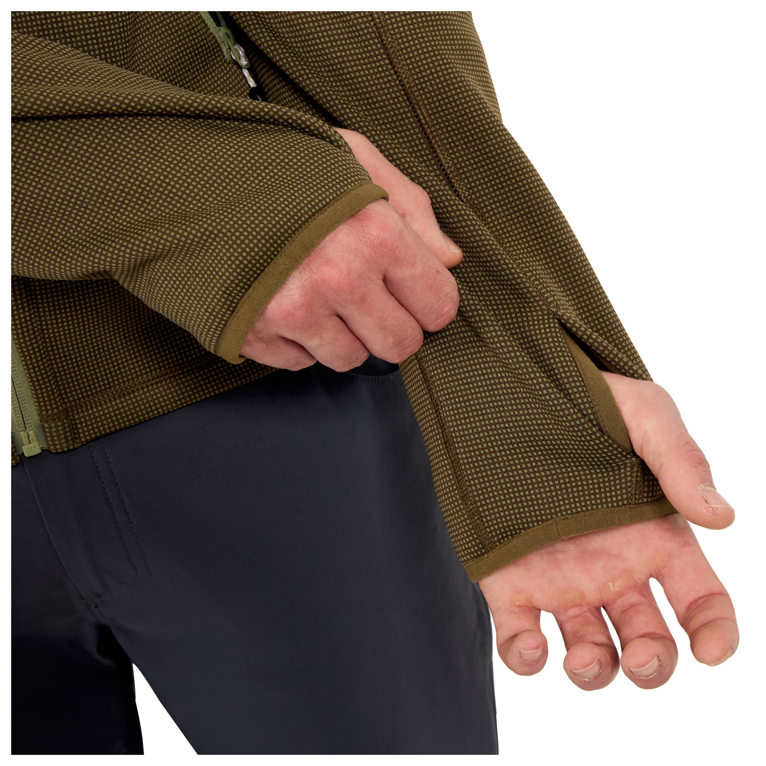 - 1 sleeve pocket, 2 zipped front pockets