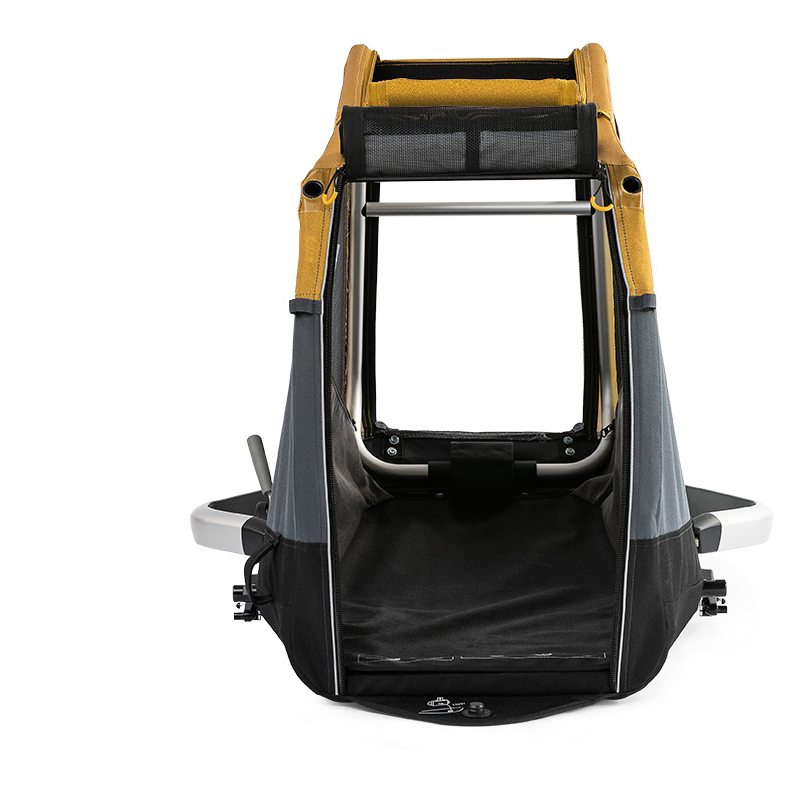 - Extra-deep entry (14cm); Zip-open panels on front and top; Fresh air supply; parking brake on both sides; washable interior; Bumper with openings for lock; removable splash guard