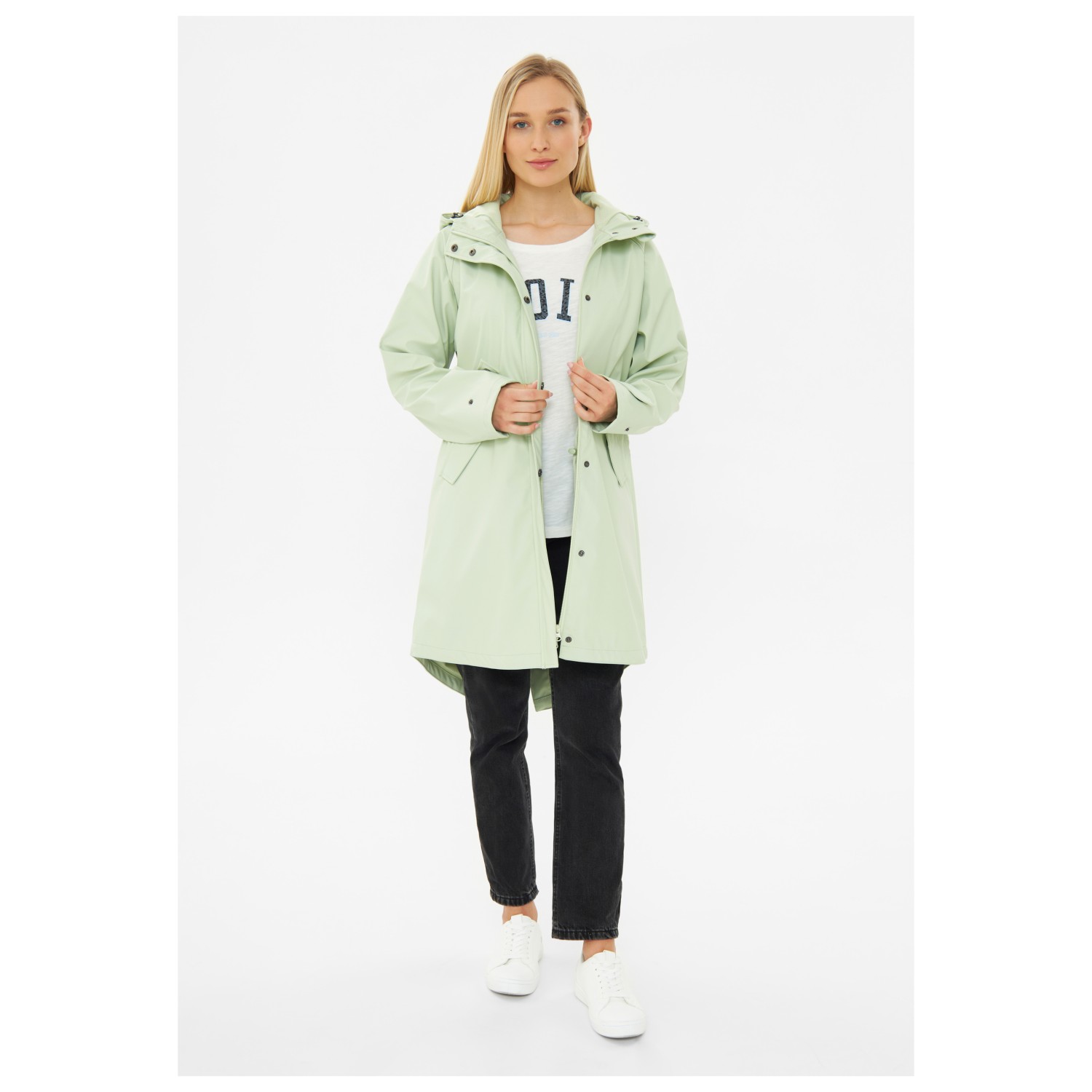 - hook-and-loop fasteners on the sleeves, drop back hem