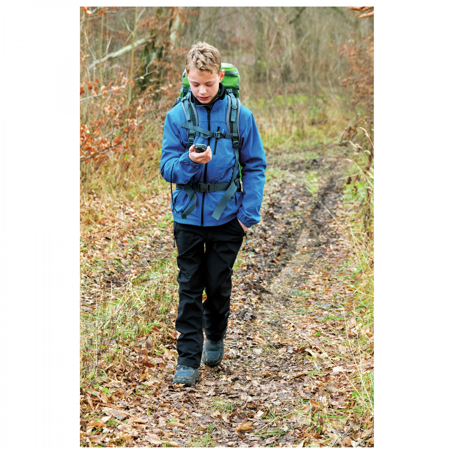- chest strap, padded shoulder straps, hip belt