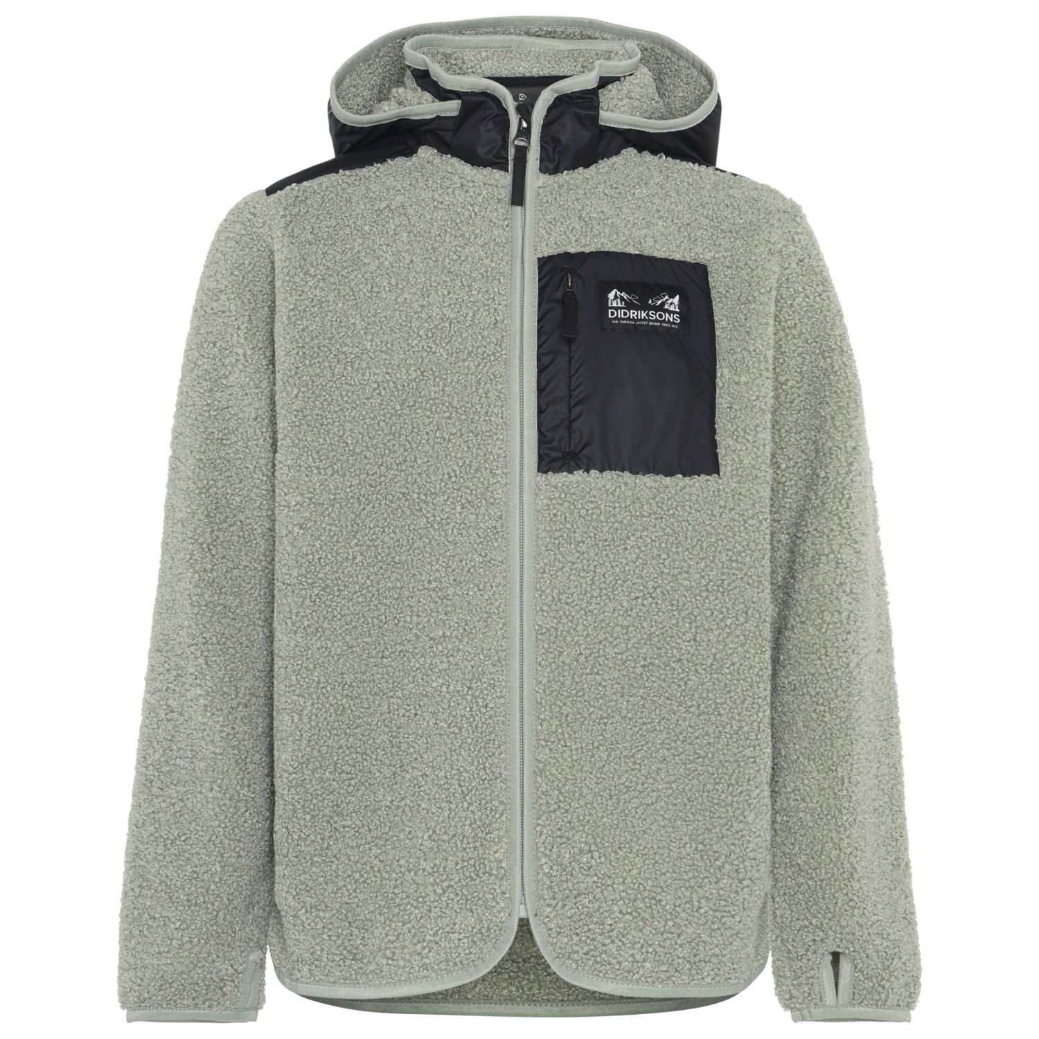 - thumb loops, elastic sleeve cuffs