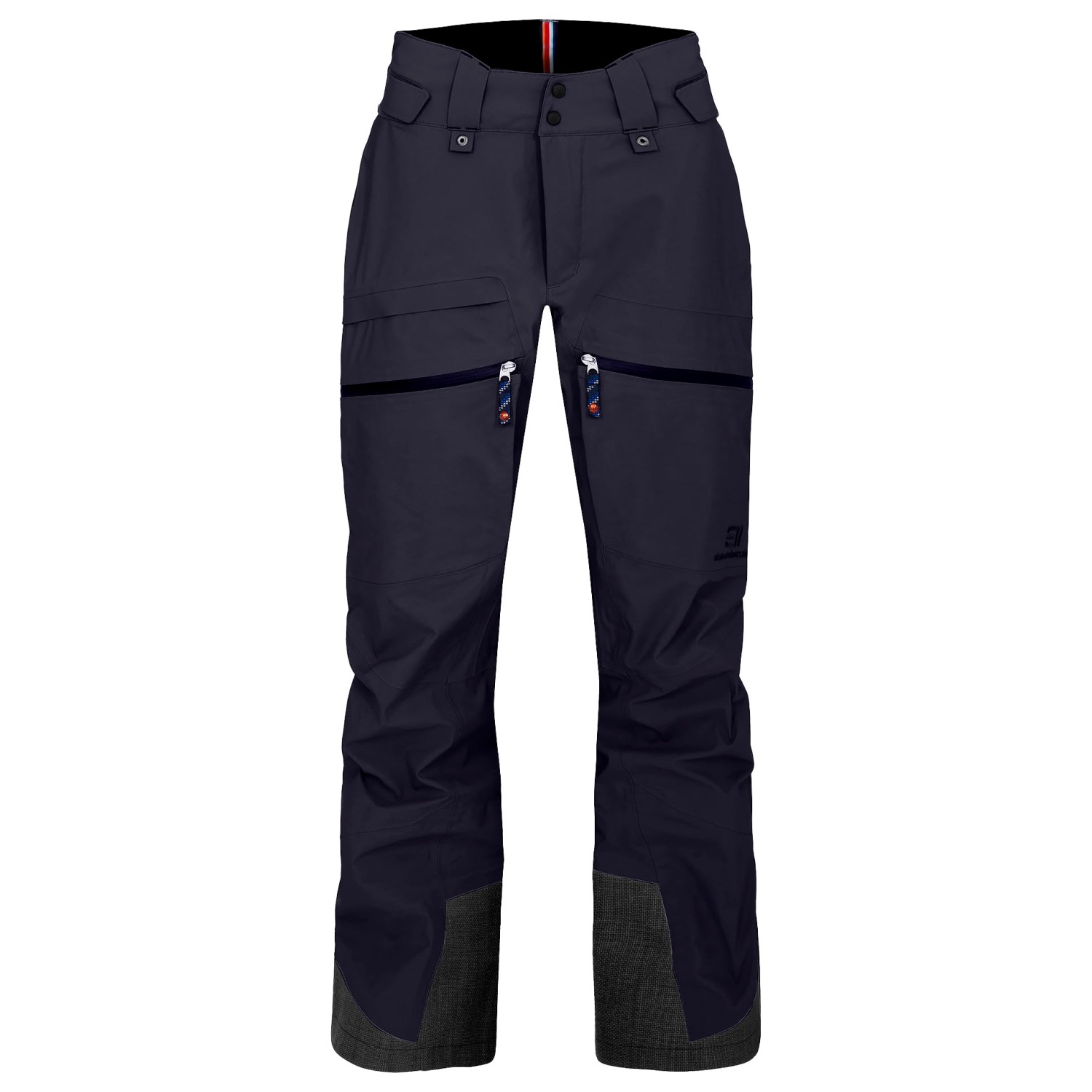 - belt loops, integrated gaiters, scuff guard, adjustable waistband, articulated knees, water-repellent zips