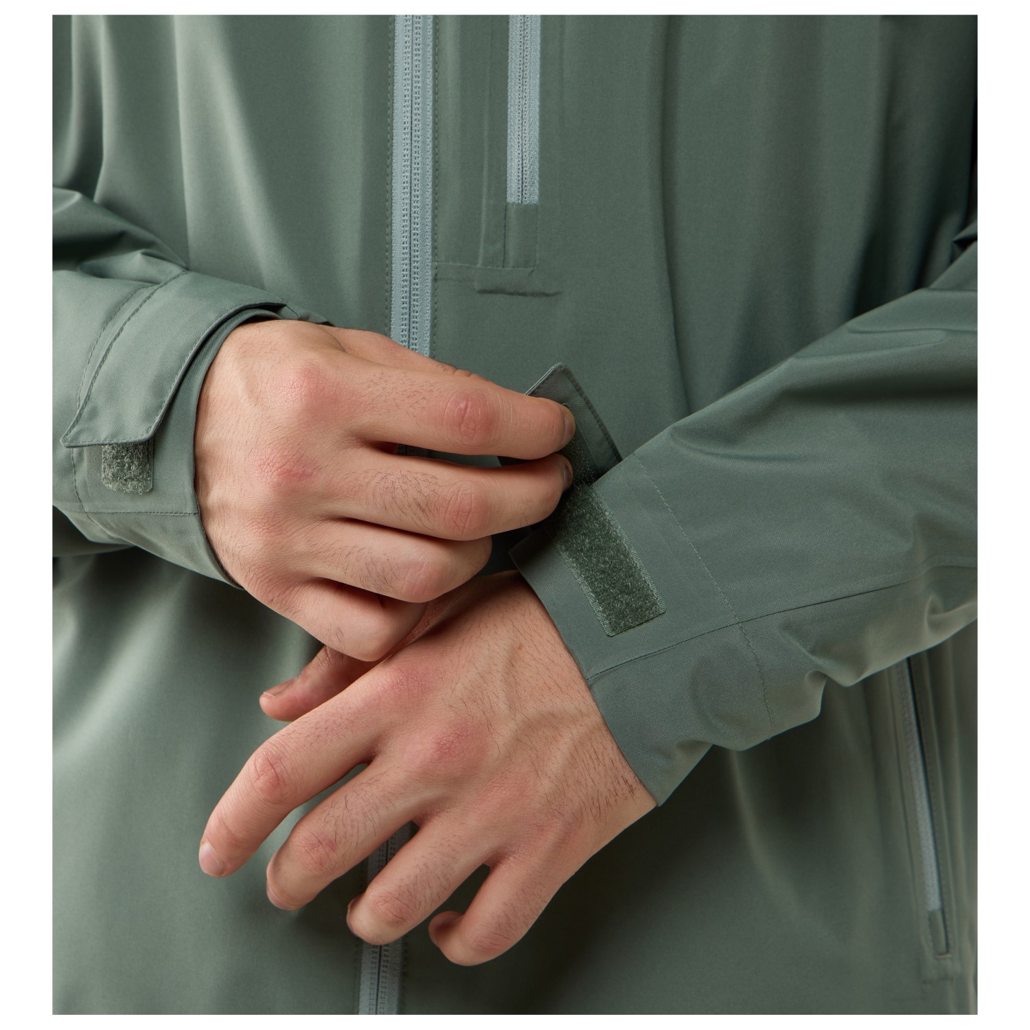- hook-and-loop fasteners on the sleeves, drawstring in the seam, water-repellent zips