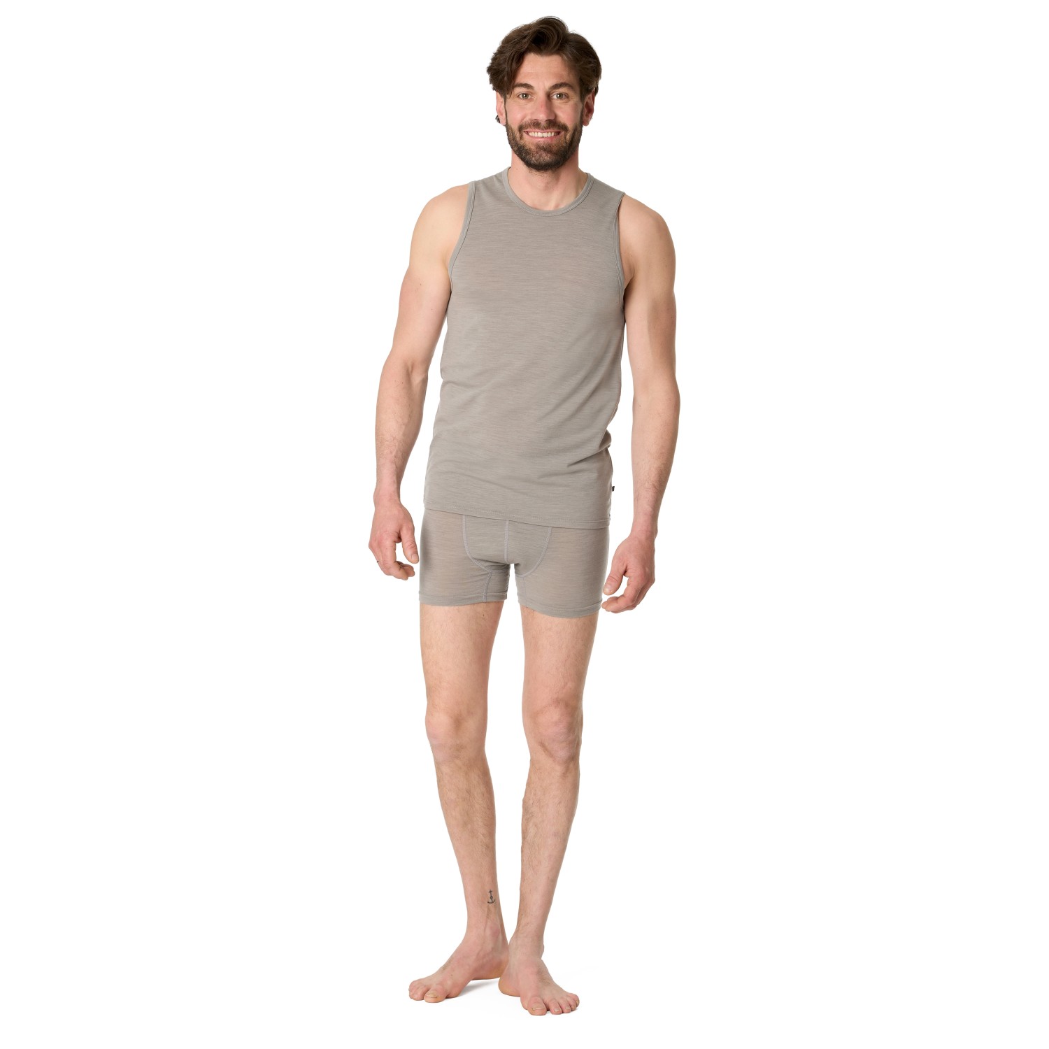 Made from MerinoMix165 material with 48 per cent mulesing-free merino wool, supplemented by polyester and elastane, this tank top combines natural and technical properties. The fine 18.5 micron merino wool, weighing 165 g per square metre, ensures a balanced ratio of lightness and functionality. The material is odour-inhibiting, breathable and temperature-regulating, keeping you comfortable in changing conditions. At the same time, the elastane content keeps the fabric pleasantly stretchy and easy to move in.