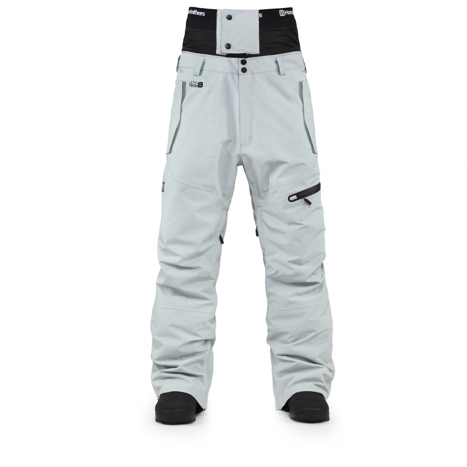 - detachable powder skirt, integrated gaiters, with key clip, boot hooks, adjustable waistband, articulated knees