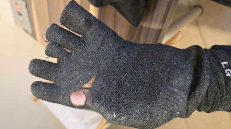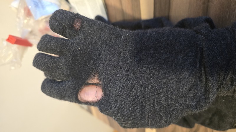 These socks have a very tight elastic band that leaves marks on my calves. They didn’t last long enough, as holes appeared under my toes.