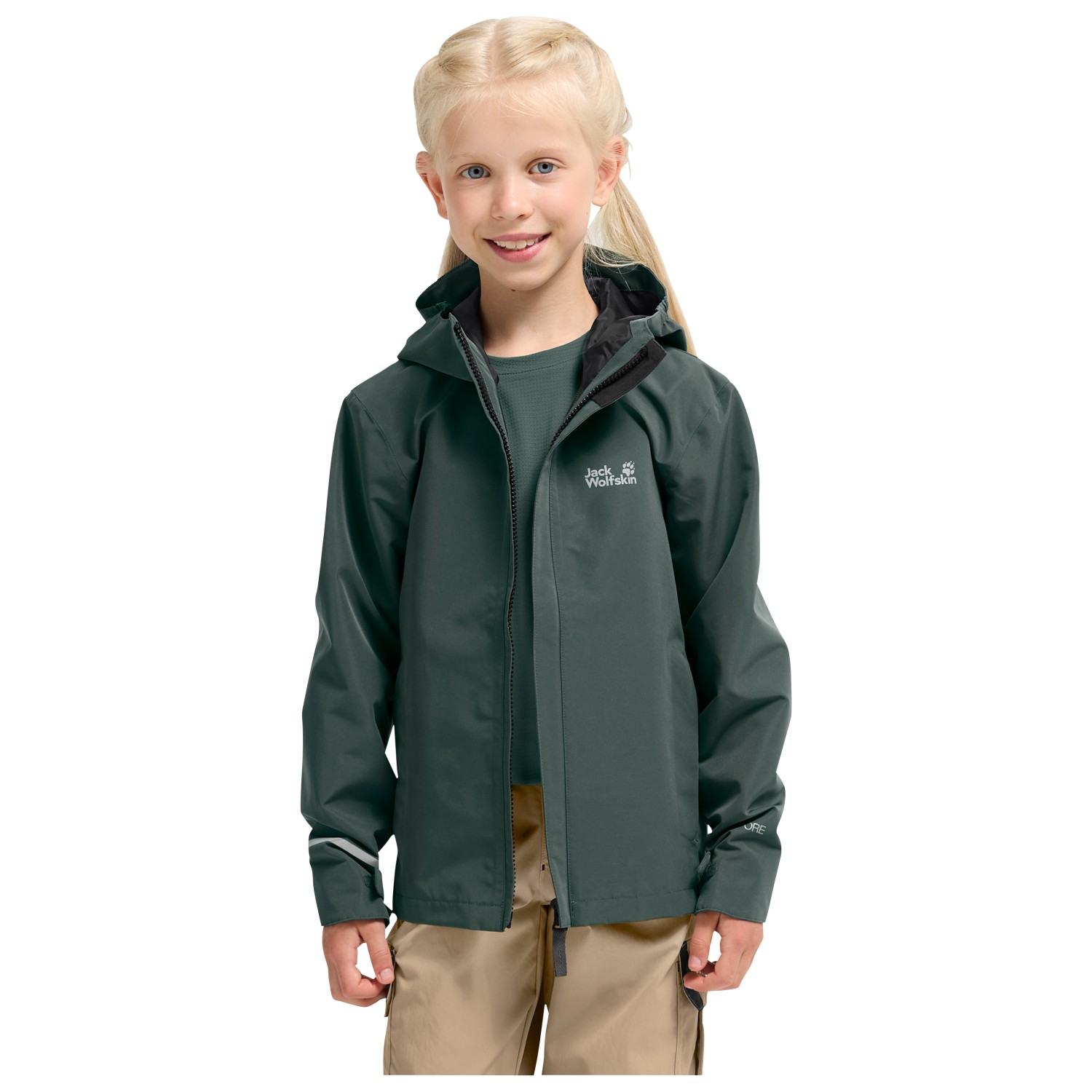 - hook-and-loop fasteners on the sleeves, drawstring in the seam