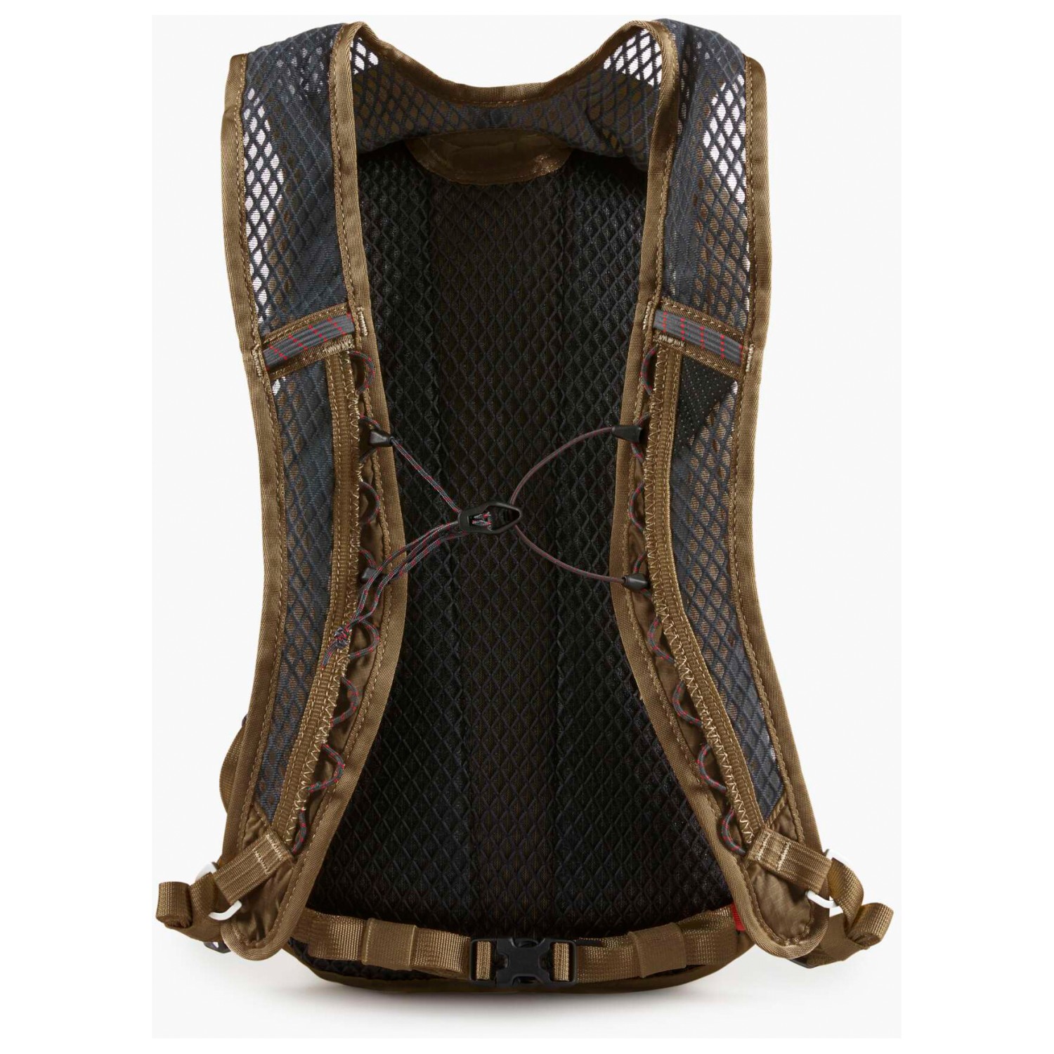 - padded back, hip belt, with carry handle, mesh back, shoulder straps