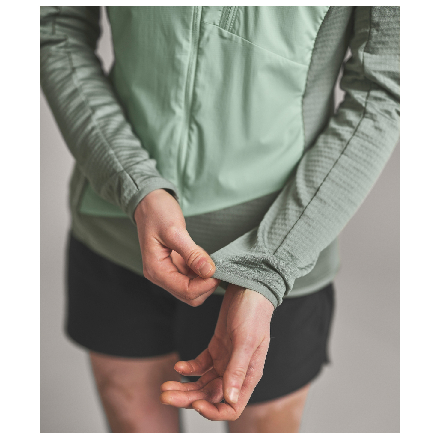 - elastic sleeve cuffs, elastic hem, stowable in its own pocket