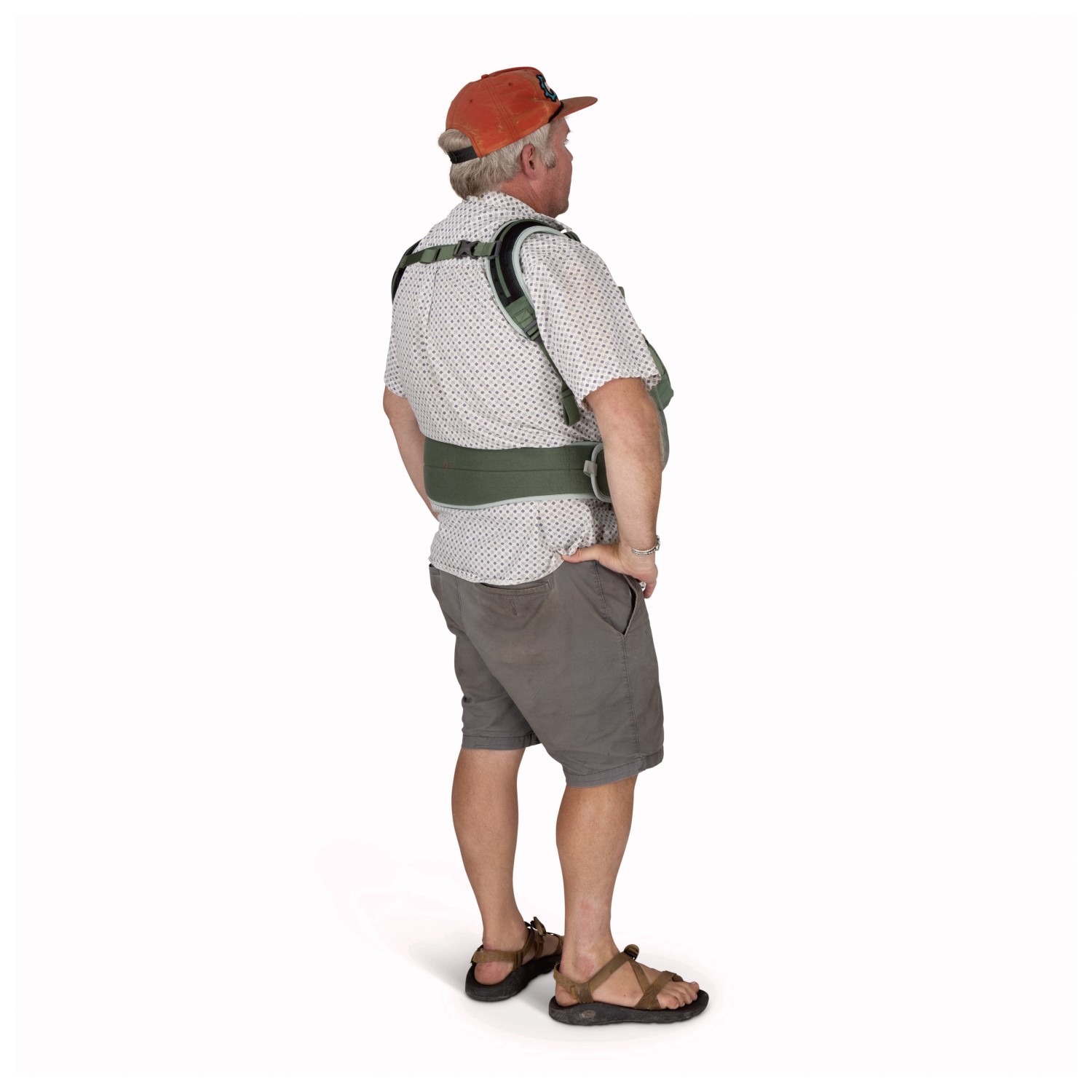 - chest strap, padded shoulder straps, padded hip belt