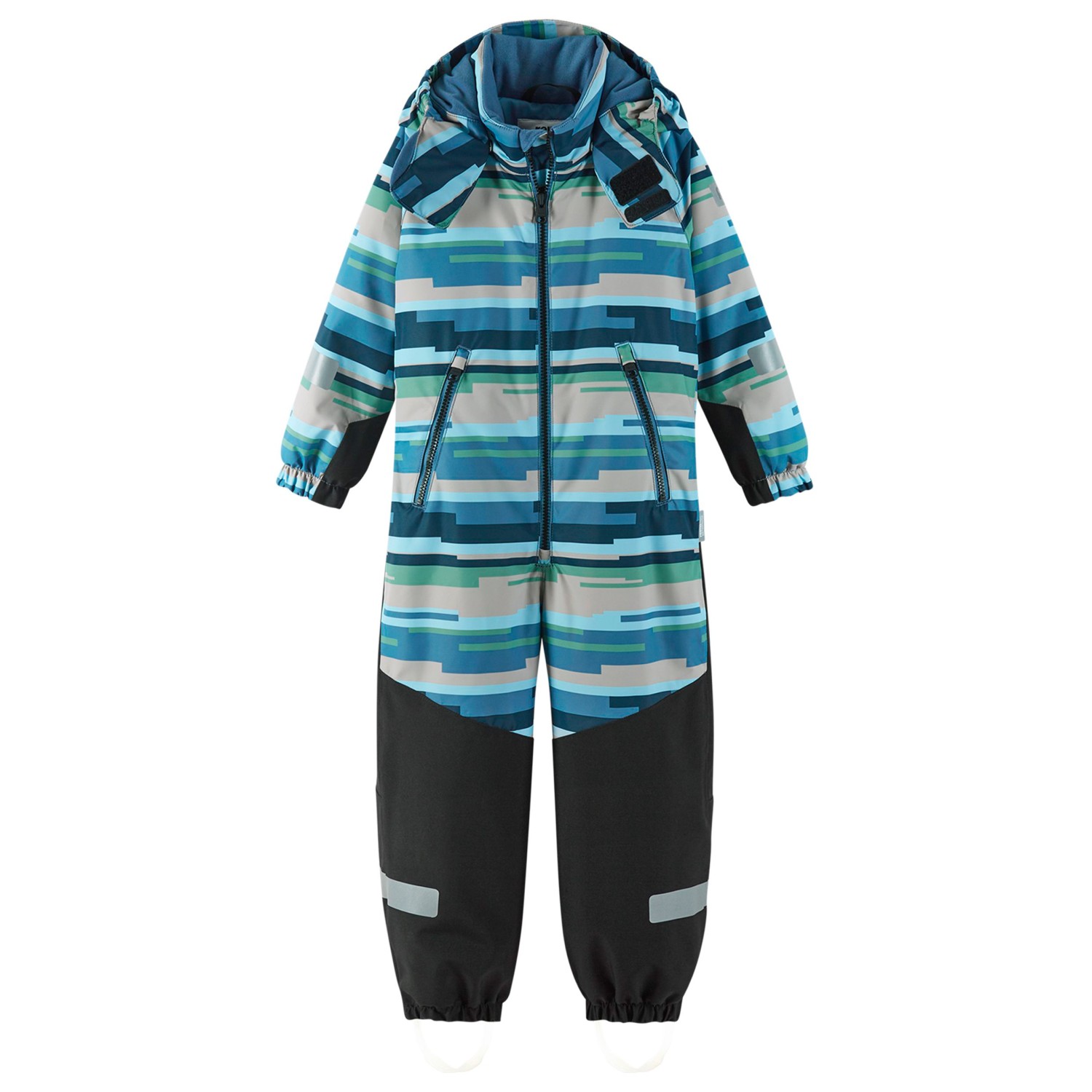 - elastic sleeve cuffs, foot loops, reflective details