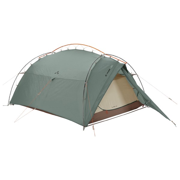 Unbeatably quick to set up and spacious: the Allround Mark 3P from Vaude! Its weatherproof and reliably durable material on the flysheet and groundsheet is made entirely from recycled PET bottles. Add to this the special design of this 3-person trekking tent, with its angled outer poles, and you have the perfect tent for fast and versatile mountain activities. It allows the tent to stand on its own and, with its elasticated suspension of the flysheet, offers hardly any wind resistance. Another advantage of this very wind-stable construction is that you don't have to re-tension it in wet conditions.