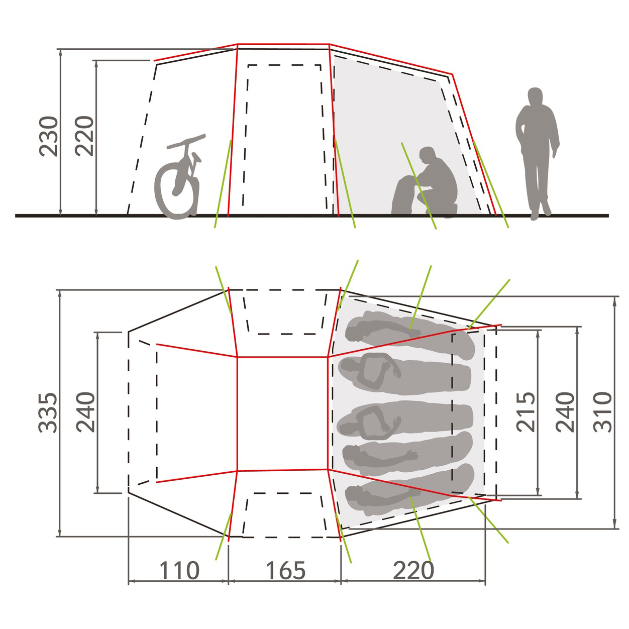 - 230 x 315 x 220 cm (LxWxH)